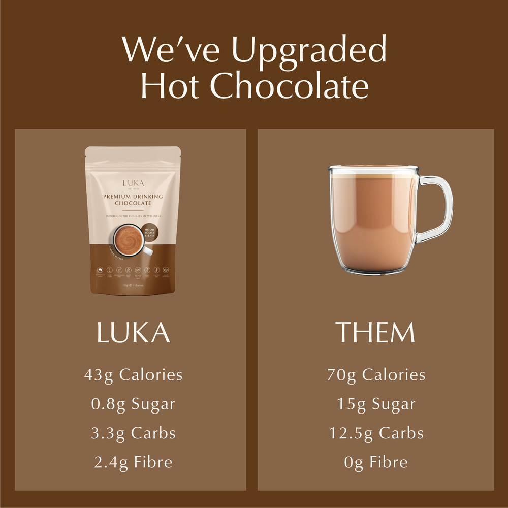 This isn’t your average drinking chocolate. Every scoop is crafted with premium, plant-based ingredients designed to nourish your body and support a calm, balanced mood — all without sugar, dairy, or preservatives.