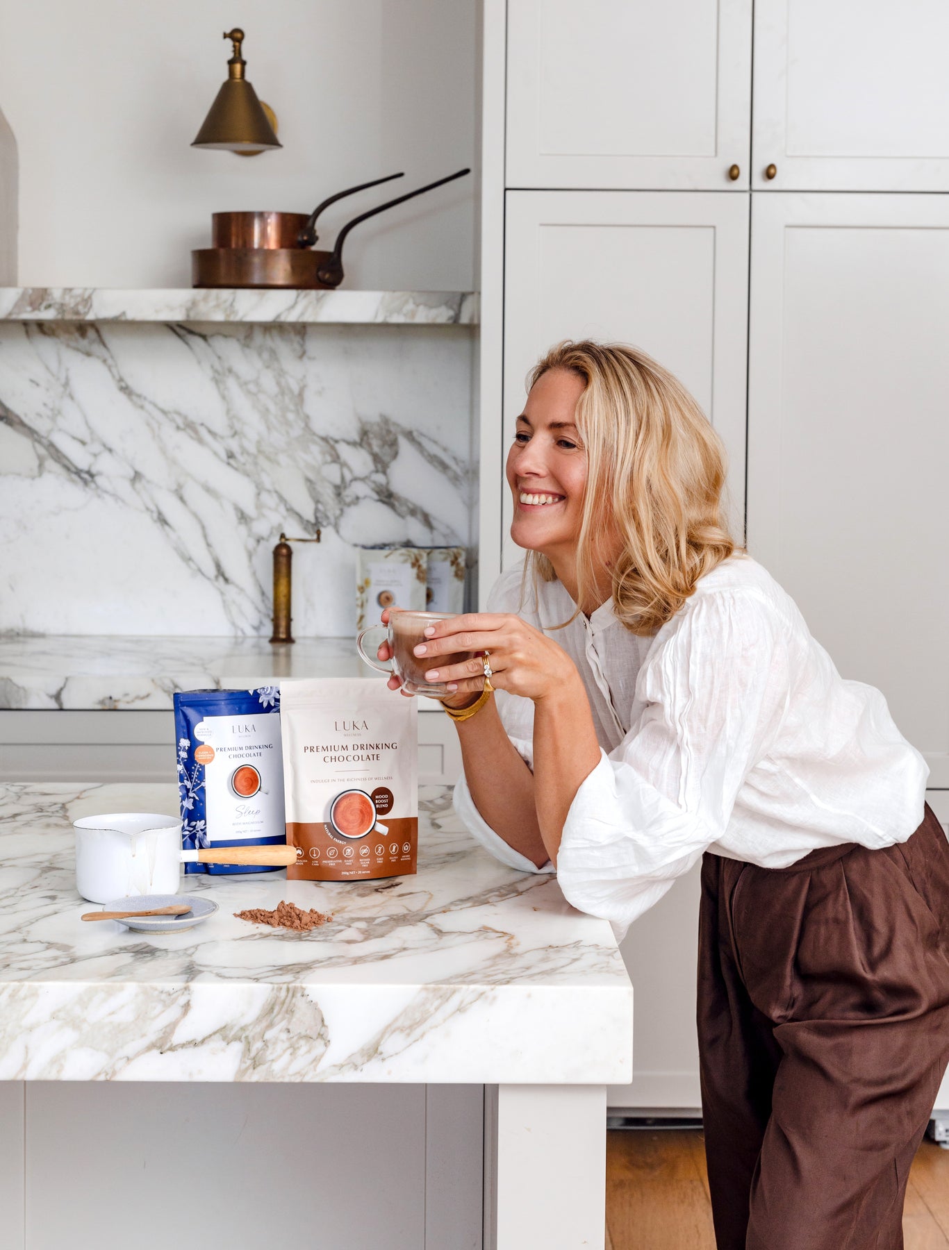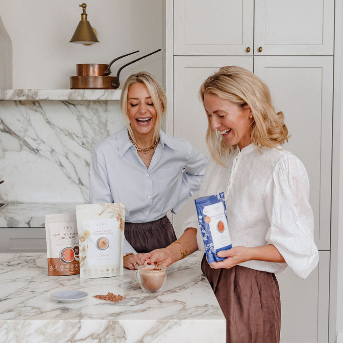 The LUKA Mood Boost Blend delivers a rich, plant-based drinking chocolate crafted to uplift your mood and nourish your body with every comforting sip.