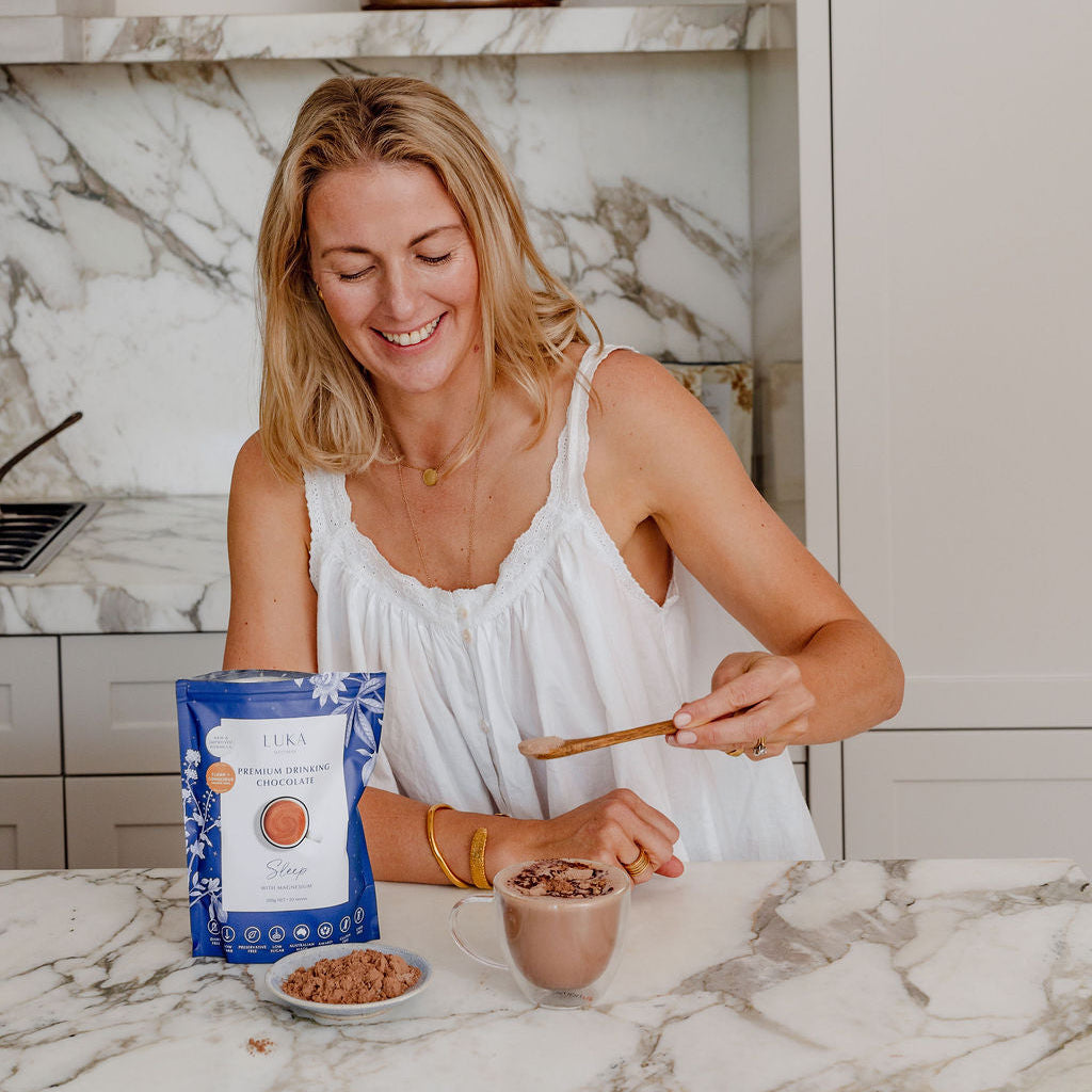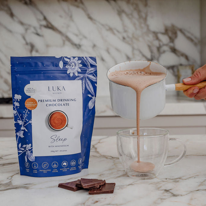 The LUKA Sleep Blend delivers a soothing, plant-based drinking chocolate designed to calm your mind and prepare your body for restful sleep with every comforting sip.